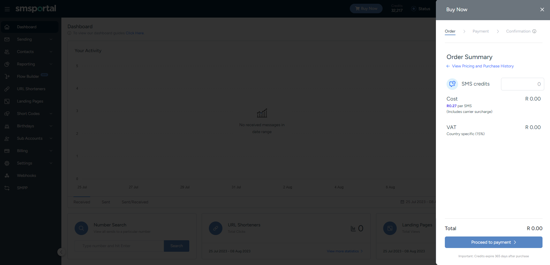 Enter your desired number of credits to purchase.
